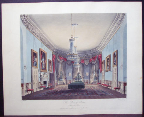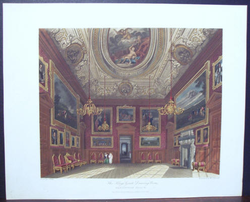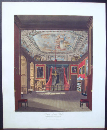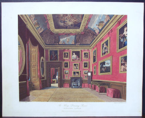 The following prints on this page are Hand-colored Aquatint engravings from W. H. Pyne's The History of the Royal Residences of Windsor Castle, St. James' Palace, Carlton House, Kensington Palace, Hampton Court, Buckingham House, and Frogmore. Printed in London, 1819.