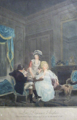 Vidal: "Le Dejeuner Anglais" and "La Lecon Interrompue," Original mezzotint engravings, each measuring 13 1/2" x 9 1/2." Priced as a pair. - $275