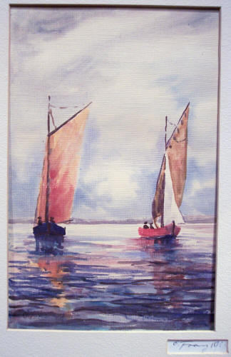 Otto D. Franz: Original Watercolor On Textured Paper, 1963. Signed 'O. Franz' in pen on the bottom left corner of the watercolor and 'O. Franz 1963' clipped on the matting. Very good condition. Paper is 12" x 8;" Matting is 15" x 11." - $150